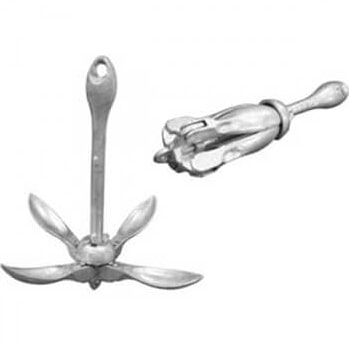 Якорь за счет складывания и фиксации лап удобен при транспортировке и хнанении, в случии надобности якорь легко раскладывается и фиксируется специальным стопором. Вес якоря составляет от 1.5 кг до 6 кг. Расчет веса якоря производится из размеров лодки.