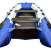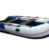 Надувная лодка СТЕЛС 375 изготовлена и ПВХ ткани плотностью 1050 гр/м.кв., и представлена в современном дизайне и комбинированном сине/белом цвете.