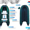 Лодка оснащена всем необходимым: легкие алюминиевые пайолы с антискользящей насечкой и усиленными стрингерами, алюминиевые сиденья из облеченного сплава с нескользящей поверхностью, влагостойкий транец для подвесного лодочного мотора, удобные ручки для переноса лодки, привальный брус с волноотбойником, который защищает баллоны лодки при швартовке.