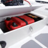 Лодка РИБ Адмирал 410 подойдет под мотор мощностью до 40 л.с. Поставляется в комплекте с носовым и кормовым рундуками, в которых можно разместить необходимое снаряжение, а также с удобной консолью, позволяющей установить штурвал для управления судном и включающей в себя дополнительное место для пассажиров на борту. Вместимость — 5 человек. Корпус модели 410 полностью выполнен из стеклопластика, баллоны лодки надувные и разделены на 5 герметичных отсеков, повышающих безопасность и плавучесть судна.