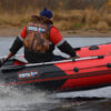— Мотор мощностью 5 л.с. — подойдет для одного шкипера и небольшого количества вещей. Уверенный выход на глиссирование с загрузкой до 140 кг. Максимальная скорость движения под мотором мощностью 5 л.с. со шкипером массой 65 кг. — 28 км/ч, скорость движения со шкипером весом 105 кг — 25 км/ч. Рекомендуем к установке двухтактные лодочные моторы, из — за малого веса и скоростных показателей.