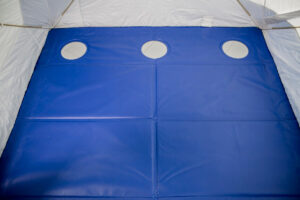 - Внутри зимней палатки оборудовано устройство, которое обеспечивает стойкую фиксацию даже на ледовой поверхности для создания максимального комфорта путешественника, например, во время зимней рыбалки.